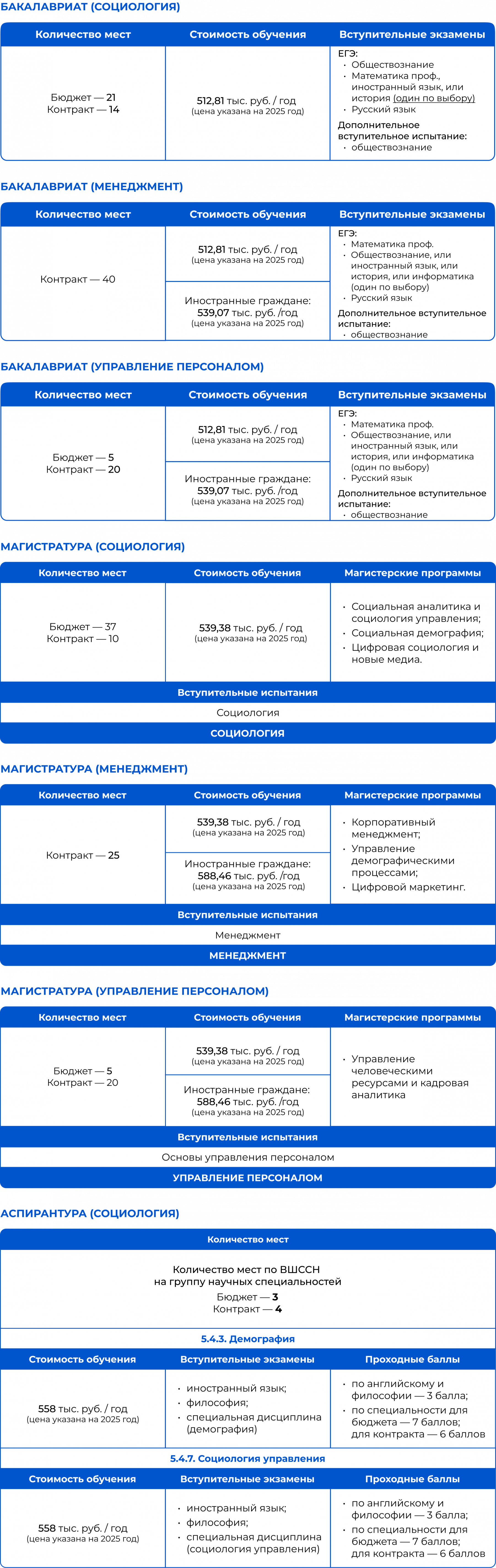 Высшая школа современных социальных наук проводит набор по следующим уровням образования
